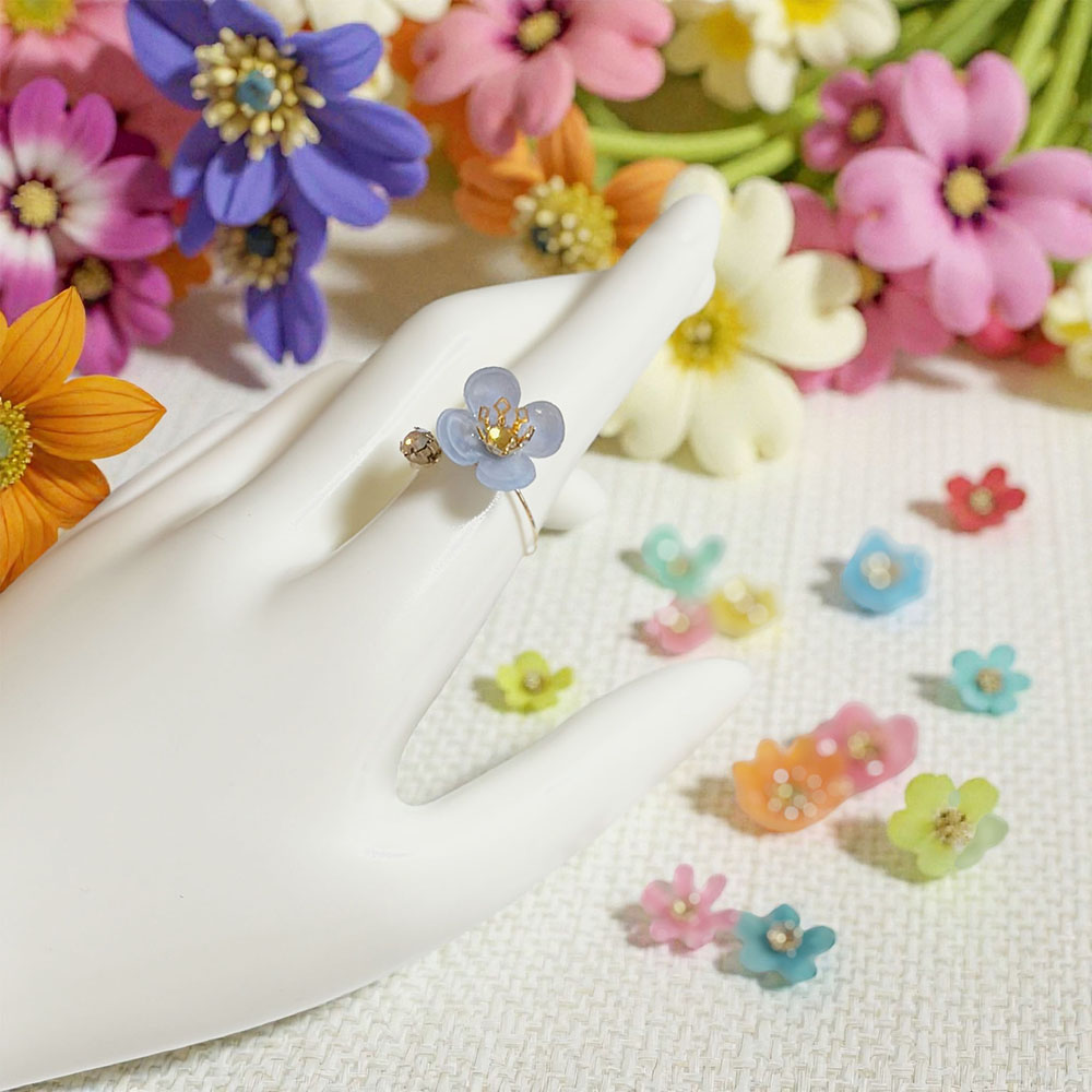 カット済みプラバンで、自分だけの「お花の指輪」を作りませんか?好きな色で彩り、熱を加えて花びらを整える工程は、まるで魔法のよう。初心者でも簡単・綺麗に仕上がります。指先にあなただけの一輪を咲かせましょう。