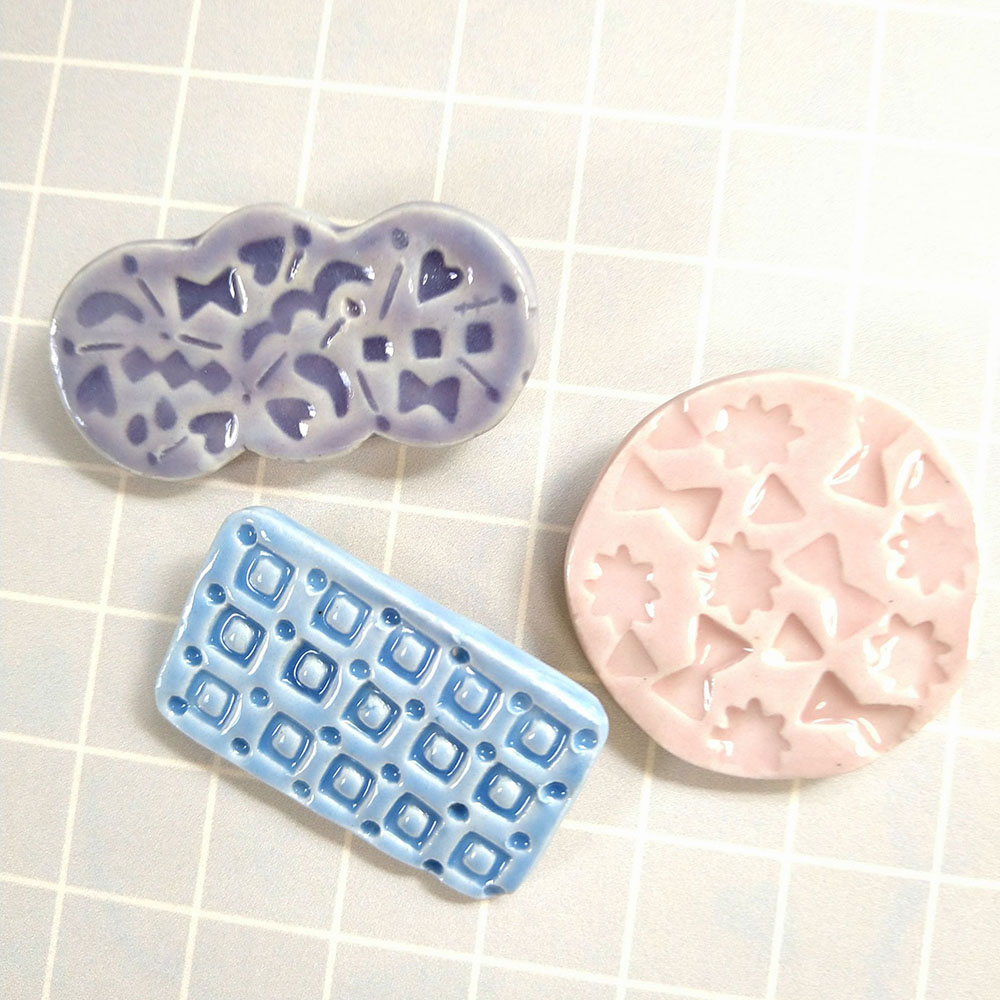 好きな形の陶プレートに、陶印(作家オリジナルの陶のハンコ)を自由にレイアウトして押してデザインします。