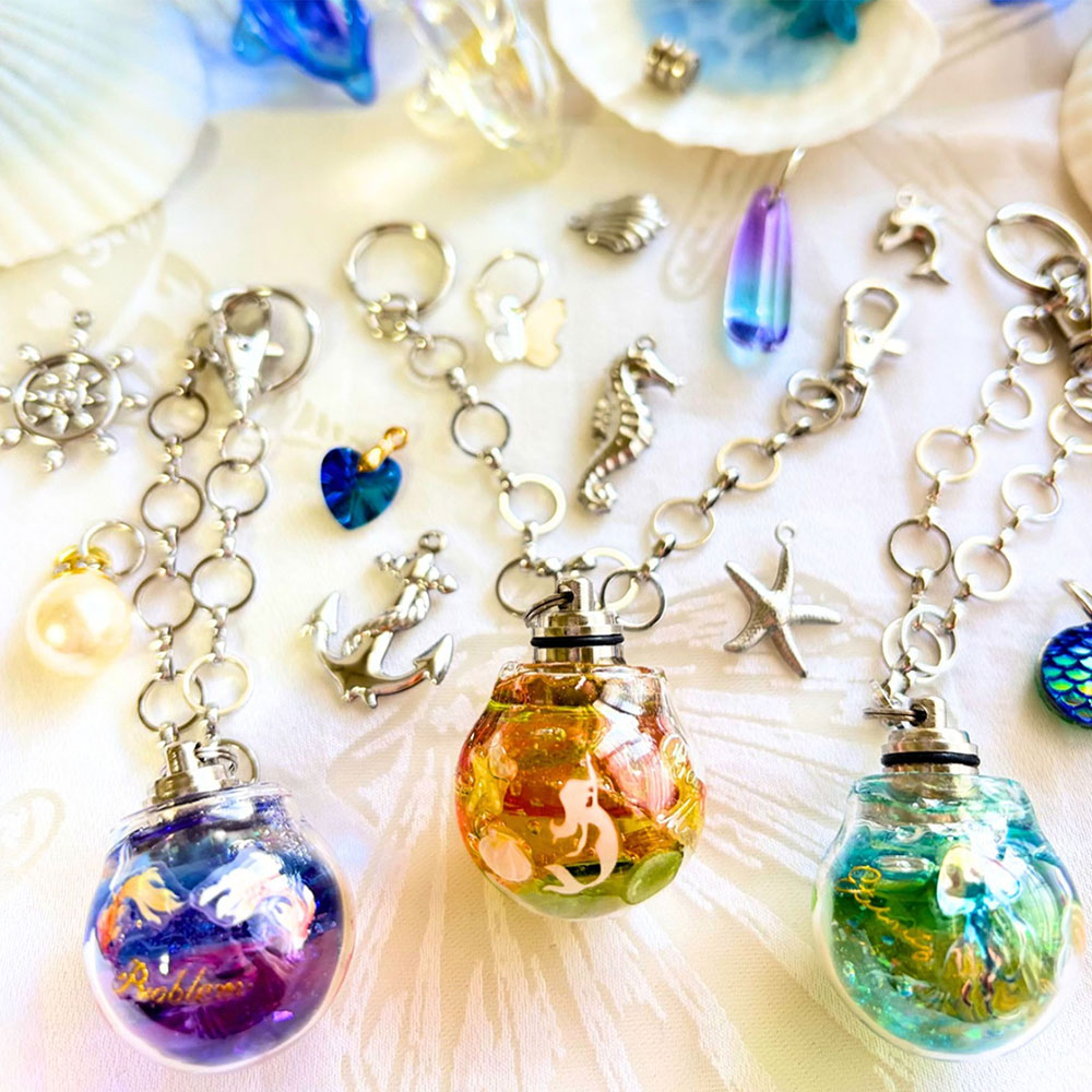 レジンで作る7色に光る海のバックチャーム。