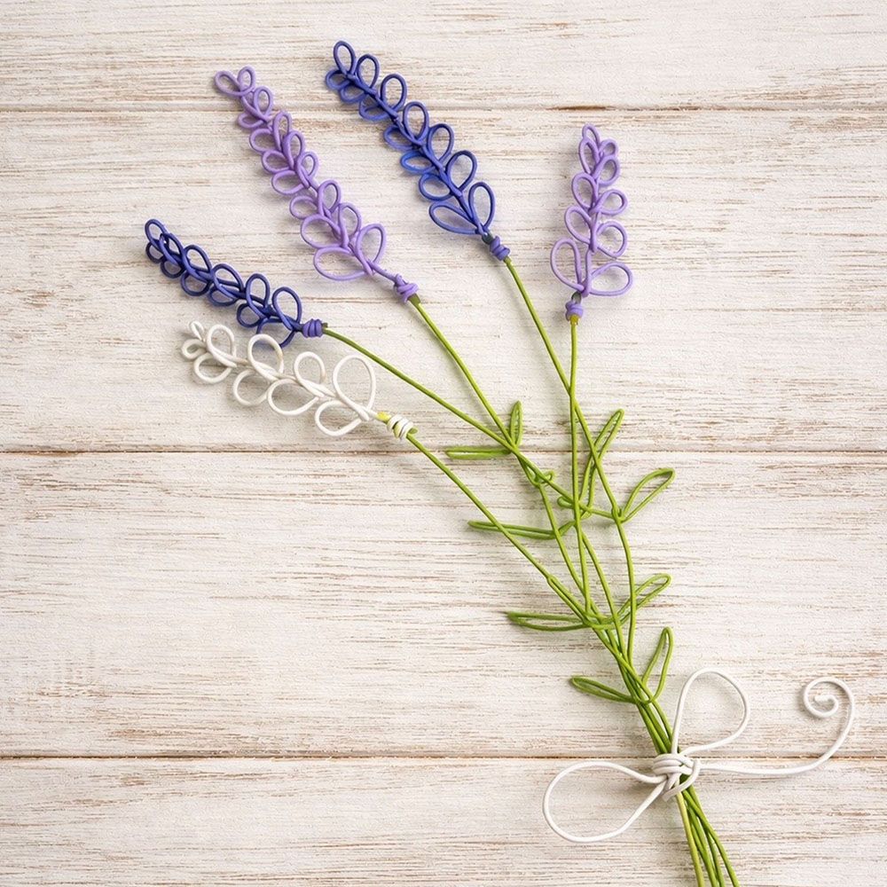 カラフルなワイヤーを使ってラベンダーを制作します。