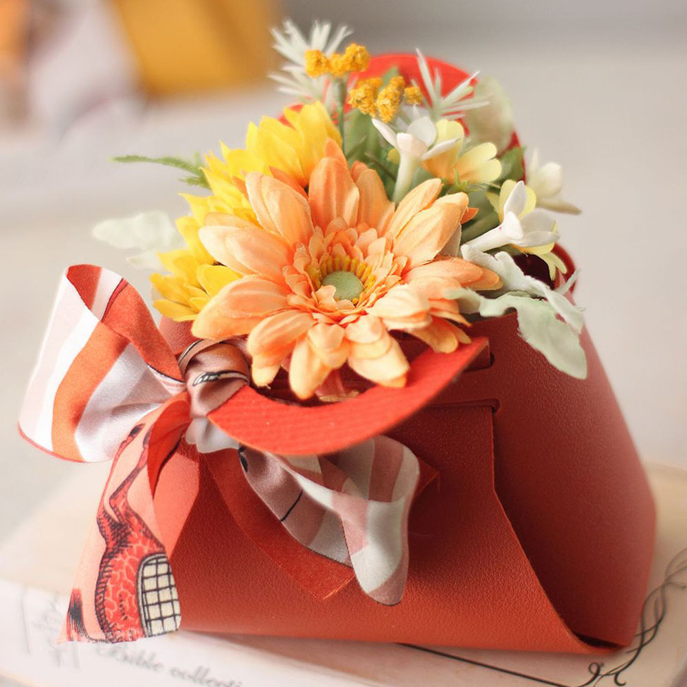 上質な造花で、簡単なブーケをつくり、おしゃれなバッグに入れて、持ち帰っていただきます。